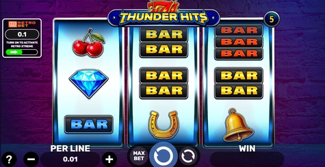 As you know, some classic 3-reel slots offer a bonus payout for landing the highest-paying combo. In 777 Thunder Hits, this approach is implemented via the Retro Bet feature (see the screenshots above to make it clearer).
