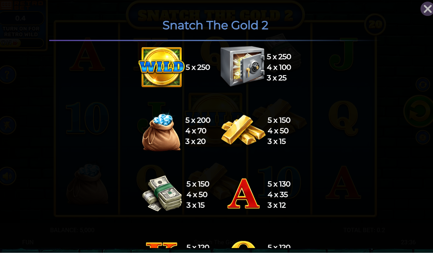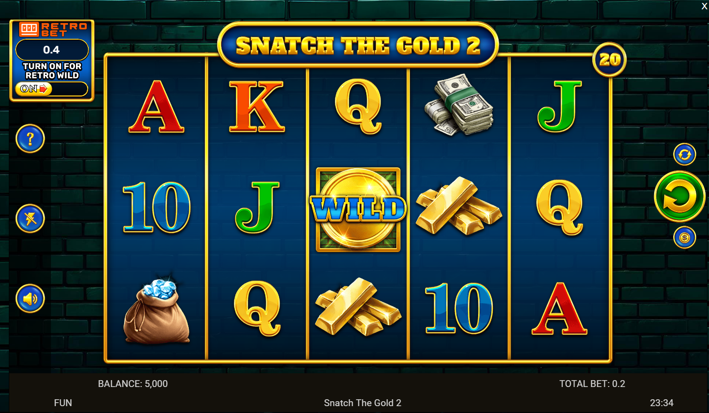Let’s look at the 20-line Snatch the Gold 2. Once active, the feature will place a sticky wild at the center of reel 3. It will be here during every spin until you disable it ansd return to the normal mode.