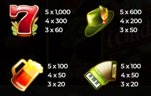 The video slot has a long wild symbol – a sweet beer maiden that serves drinks at Oktoberfest festivities. This symbol can occupy the entire reel. Once five of them create a winning combo on reels 1-5, you win x1,000 total bet (up to $10,000).